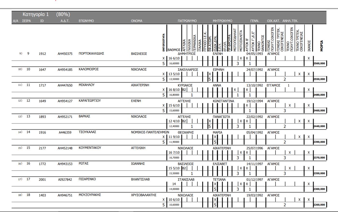 Απορρίφθηκαν οι εξής υποψήφιοι: