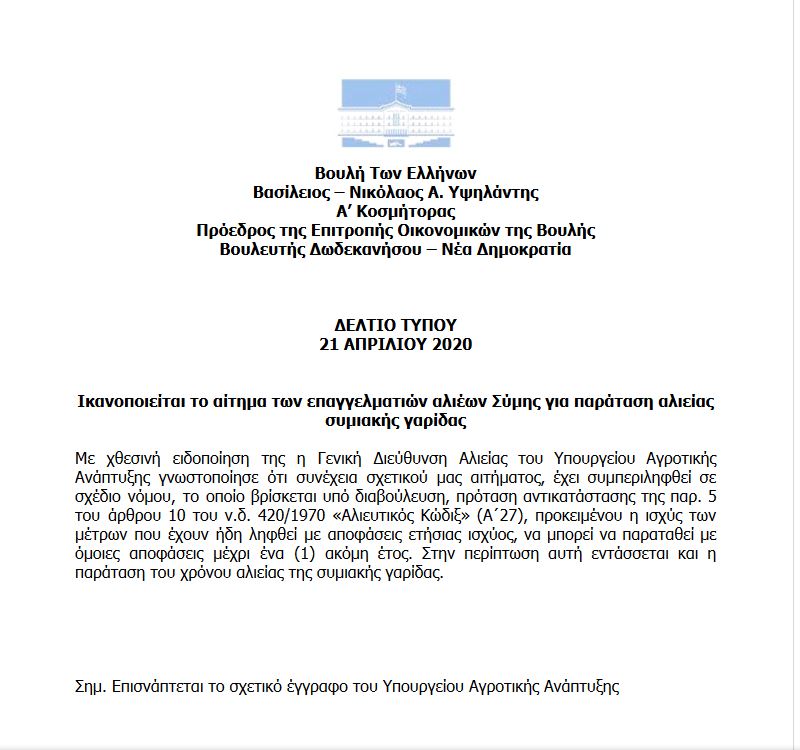 παράταση του χρόνου αλιείας της συμιακής γαρίδας.