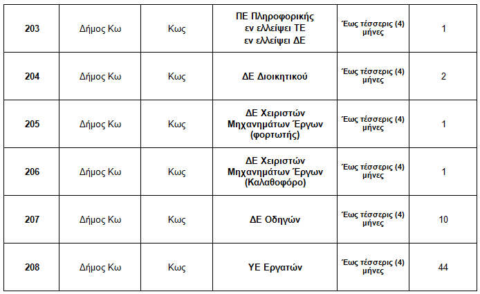 63 εργαζόμενους θα προσλάβει ο Δήμος Κω, με σύμβαση εργασίας ιδιωτικού δικαίου ορισμένου χρόνου, χρονικής διάρκειας έως τέσσερις (4) μήνες, διαφόρων ειδικοτήτων, για την κάλυψη έκτακτων αναγκών λόγω της πανδημίας.