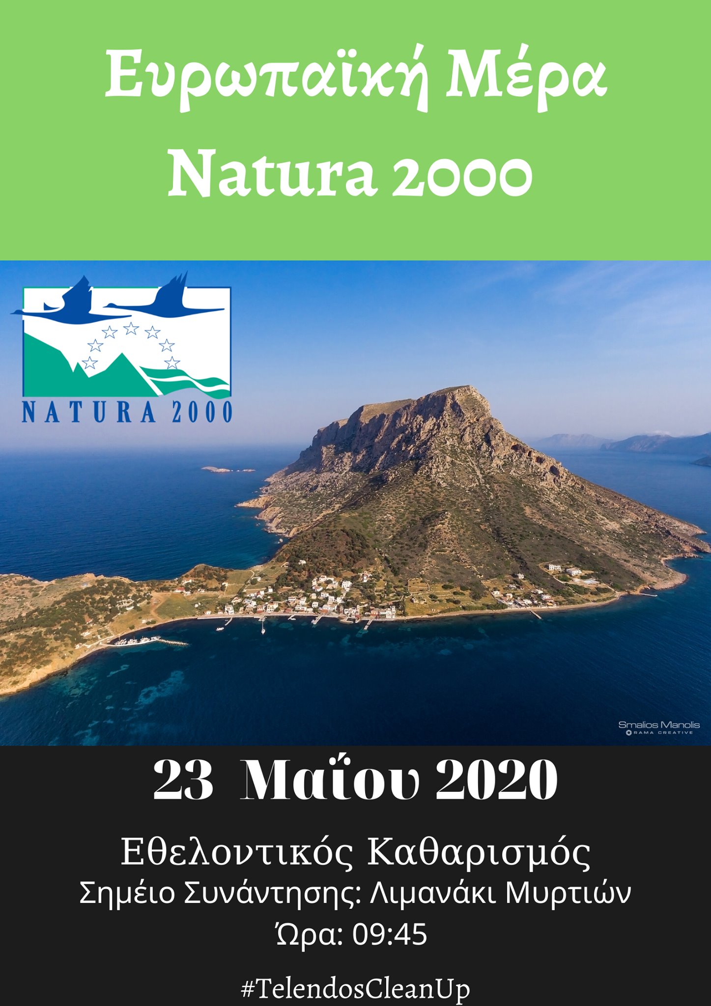 Έτσι με αφορμή την Ευρωπαϊκή Μέρα Natura 2000 (21/05) διοργανώνουμε ένα εθελοντικό καθαρισμό στην γειτονική μας Τέλενδο τόσο στην περιοχή Natura 2000 όσο και σε άλλες περιοχές του νησιού που έχει παρατηρηθεί οξύ πρόβλημα από φερτά και μη υλικά.