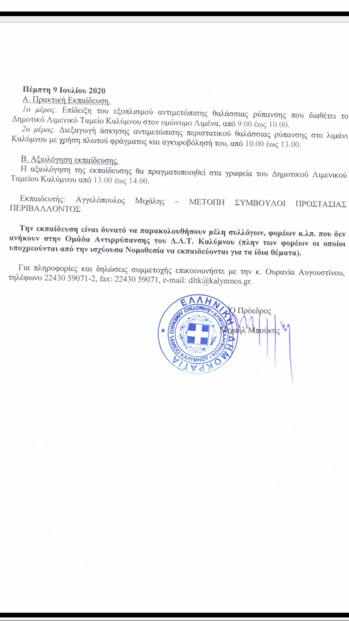 ΕΚΠΑΙΔΕΥΣΗ ΑΝΤΙΜΕΤΩΠΙΣΗΣ ΘΑΛΑΣΣΙΑΣ ΡΥΠΑΝΣΗΣ