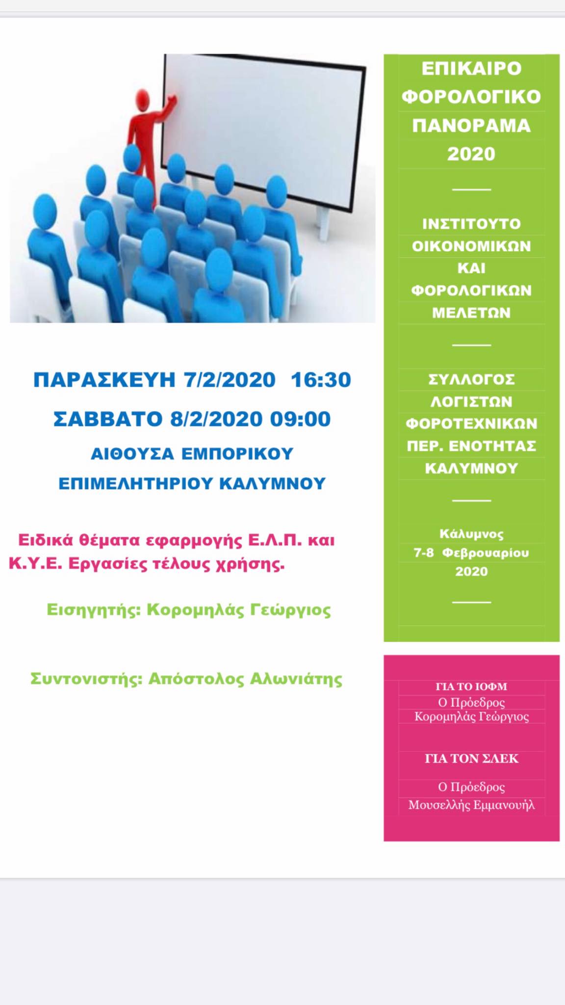 Πρόσκληση Σεμιναρίου από τον Σύλλογο Λογιστών Φοροτεχνικών Περ. Ενότ. Καλύμνου